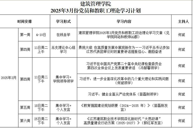 建筑管理学院2025年3月份党员和教职工理论学习计划